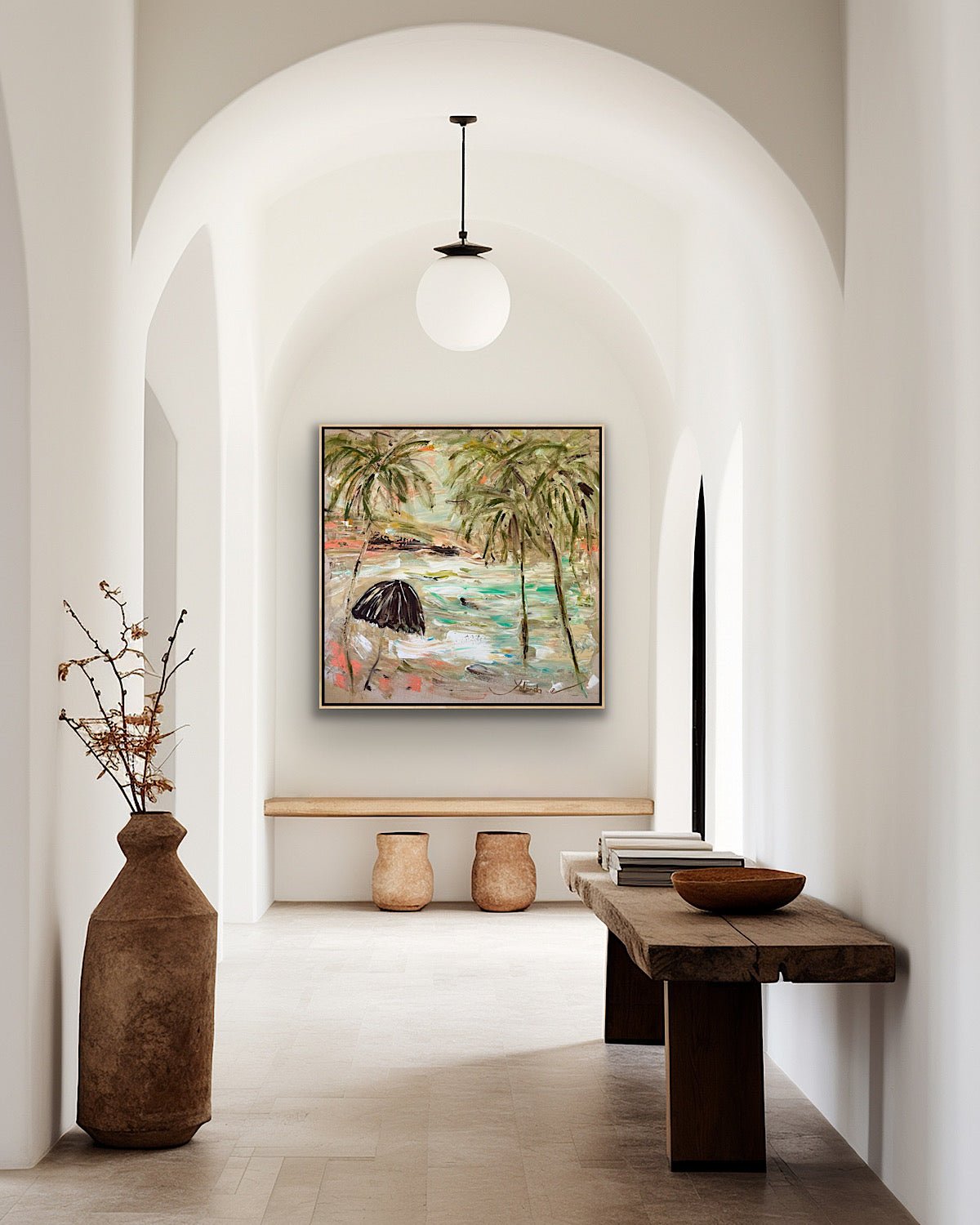 A sun-washed escape painted in loose, gestural strokes — where time slows, and even the palms take a breath.