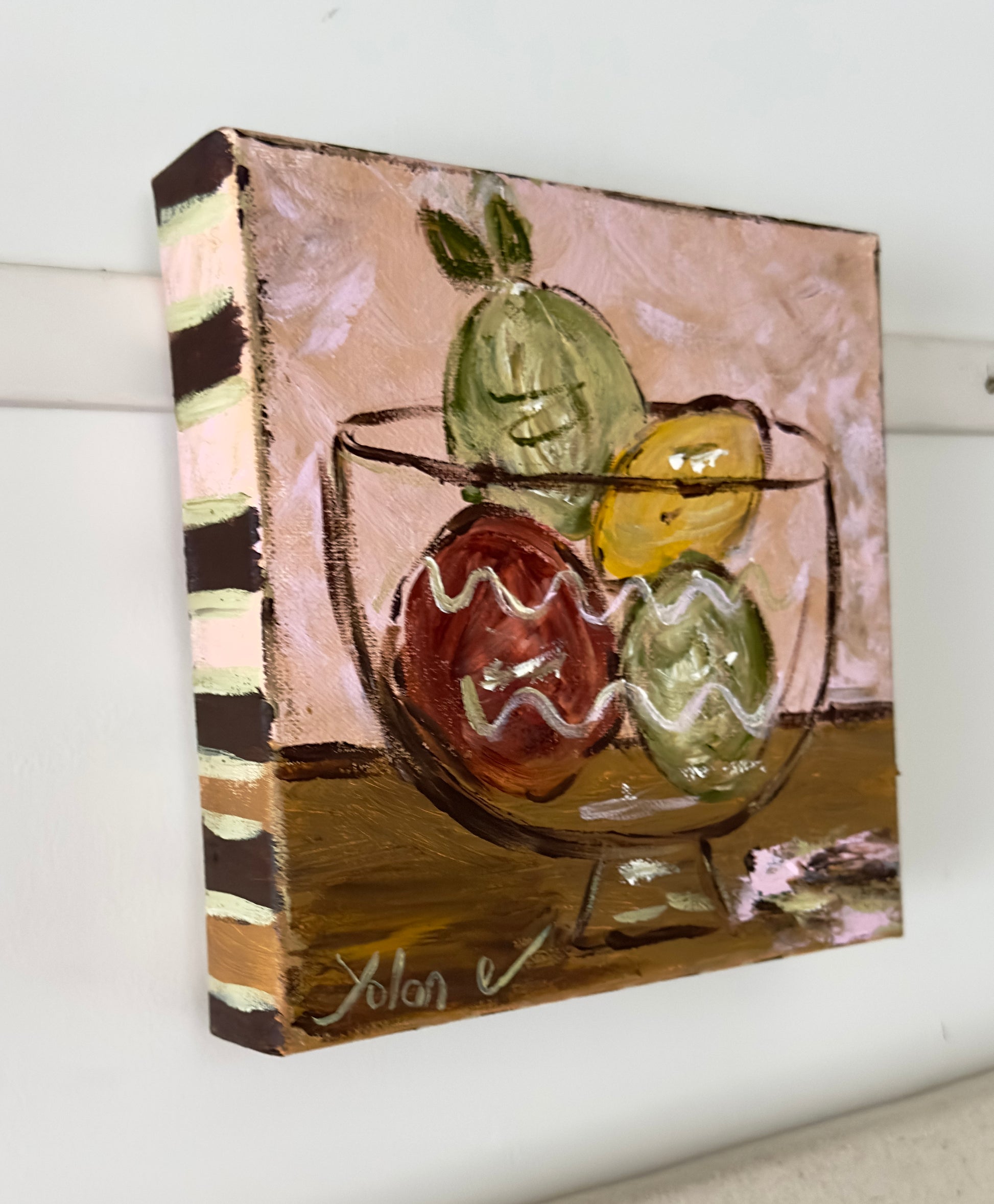 Capturing the quiet drama and undercurrent of emotion in domestic still life—where even fruit has feelings.I like to imagine each fruit has a backstory, a feeling it’s trying to hide, or something left unsaid. This series lets them speak, just a little.